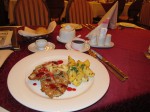 Между тем, подоспело горячее - казарка из индейки по-охотничьи и гарнир - запеченный картофель плетч. Чисто диетическое блюдо, которое можно рекомендовать и для детского меню. Ну а для меня - это настоящий подарок! Давно не пробовал столь искусно приготовленную индейку. Спасибо повару горячего цеха - Сергею! Добавим к сказанному доброе слово о булочках. Спасибо! С маслицем они были чудесны!