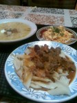 Взял в итоге салатик рыжик, супчик картофельный и с чем-то там, рагу из говядины с рожками, компот. В супчик предлагали капнуть сметаны или майонеза. Заплатил 139 рублей, что по-божески.