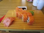 Естественно заказал капучино с корицей , ещё что-то, чем просто не стану смущать моих читателей , после чего, блуждая взглядом по ярким цветным картинкам, с трудом остановил выбор на роллах Филадельфия с зеленым луком :-)) . Что сказать? - Всё было на уровне, и вкус, и в меру сочетание разных компонентов и чудный капучино. Уложился в заранее запрограммированную сумму по деньгам, чего хочу пожелать и всем гурманам.