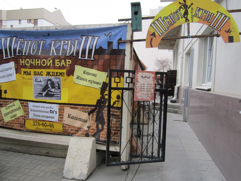 Тел: (343) 378-60-98; 8-953-043-08-66 Время работы: пн.-чт. с 12.00 до 03.00; пт. с 12.00 до 06.00; сб. с 18.00 до 06.00; вс. с 18.00 до 03.00 Адрес: Екатеринбург, Белинского, 34 Средний чек от: 300 руб. Бизнес-ланч: c 12:00 до 16:00 Кухня: Описание Заскочить на чашечку ароматного кофе, провести вечер с друзьями, выпить безумно вкусных алкогольных коктейлей, поужинать в романтической атмосфере ночных крыш или поболеть за любимый футбольный клуб… Лучшего места Вам не найти — Вас гостеприимно приглашает Шепот крыШ!